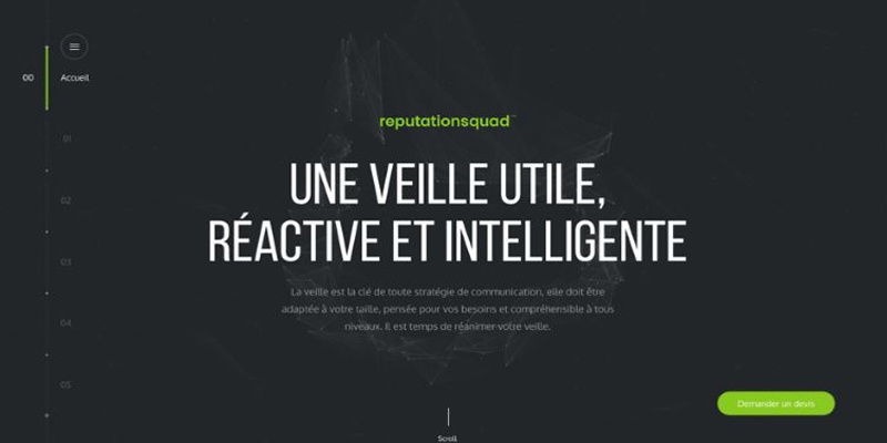 All the above are navigation menus that will completely fill the screen but do recall that the apps or websites you visit on your mobile are often “push” the content. Look at Reputation Squad which does a good job with a bright color navigation bar that is scaled nicely to the page. While muting the main page with the secondary layer.